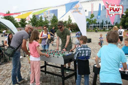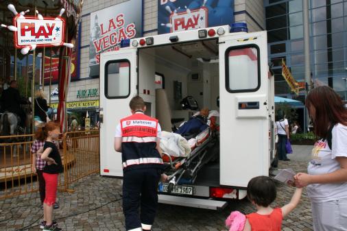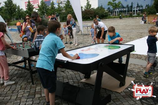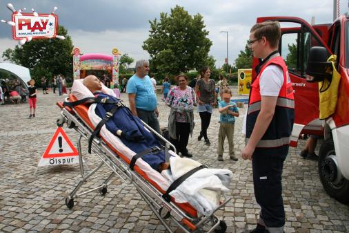 Bei der Sportjugend Dresden konnte man Airhokey, Tischtennis, Kicker und Riesen-Mensch-Ärger-Dich-Nicht spielen. Natürlich waren auch wieder die Malteser Einsatzdienste Dresden e.V. und die Ortsfeuerwehr Skaup für die Kinder zum neugierigen Bestaunen da. - Was da im Notfall so alles drin steckt ...