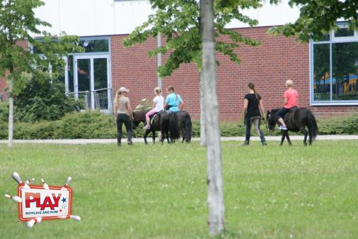 Seine Pony-Reitkünste konnten die Kids beim Kaltblutfahrteam Bothe unter Beweis stellen und eine Torwand sowie unsere mobile Bowlingbahn gab es auch noch.